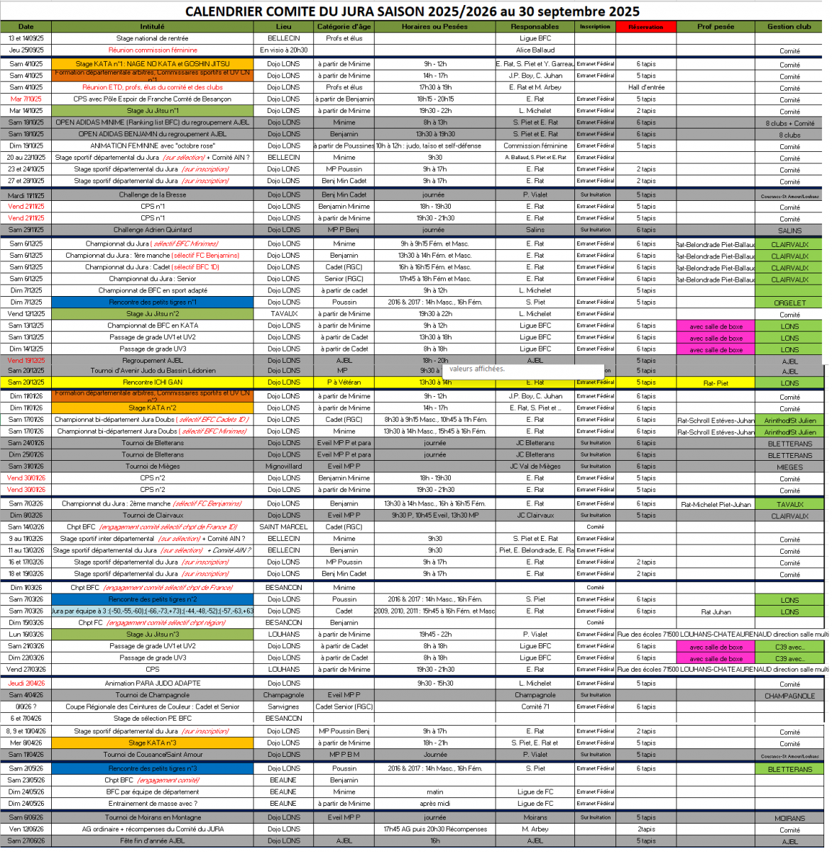 Calendrier du Jura 2025/2026